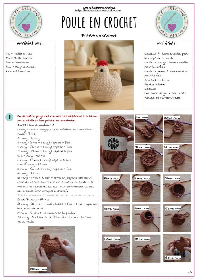 Voici un PDF complet pour apprendre à crocheter une poule.